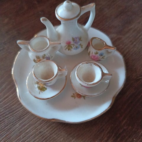 Kultareunainen herkkä ruusukuvioinen kahviastiasto. 12 kuppia, 12 tassia, 11 lautasta, sokerikko ja tarjoilulautanen. Merkki näkyy valokyvissa pohjassa, jokaisessa astiassa erityinen kultahipaisu ✨️
