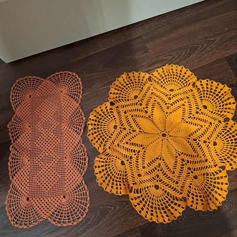 Keltaisia ja oransseja pieniä virkattuja pitsiliinoja 9 kpl