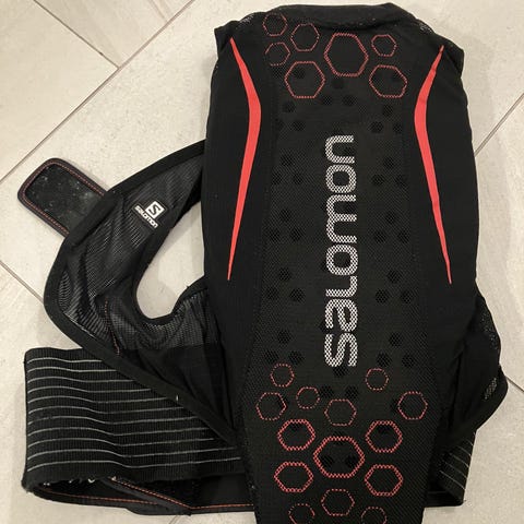 Myydään hyväkuntoinen yhden talven käytössä ollut lasten Salomonin selkäpanssari. Koko L eli sopii 141-152 cm laskijalle. Nouto Mikkelistä.