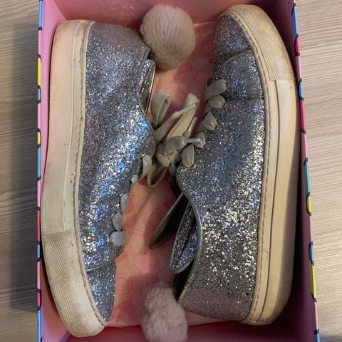 Minna Parikka juhlakengät, koko 39. Kengät ovat hopeanväriset ja koristeltu kimaltavalla materiaalla. Käytetty vain niitä harvoissa juhlissa, ostettu vuonna 2017. Kenkiä on kohdeltu hyvin ja säilötty alkueräisessä paketissa, jonka myyn kenkien mukana. Korkolaput vaihdettu suutarilla vuonna 2020.