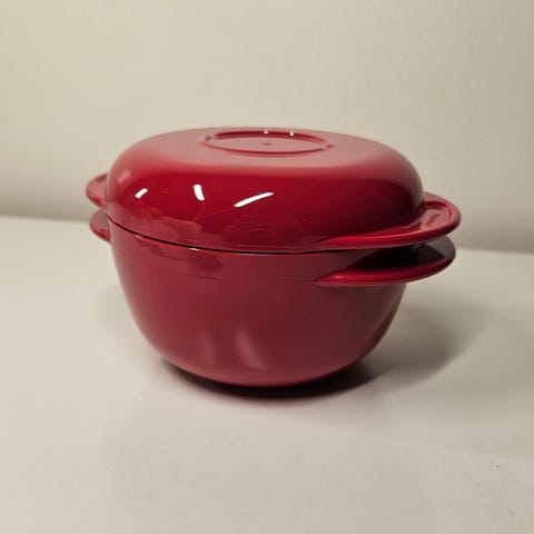 Käyttämätön Tupperwaren MicroCook Pyöreä mikroastia. Tilavuus 2,25 litraa.