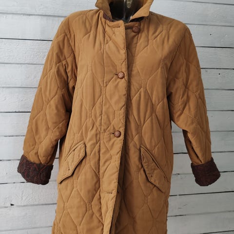 Myydään -70 luvulta oleva uudenveroinen Santa Maria merkkinen tikkitakki-aamutakki,päällinen pienikukkaista puuvillakangasta sisäpuoli nylonia.Malli A-linjainen,napitus edessä ja sivusaumoissa taskut.