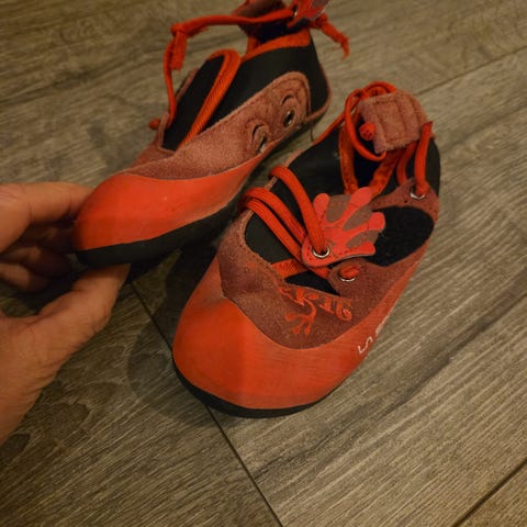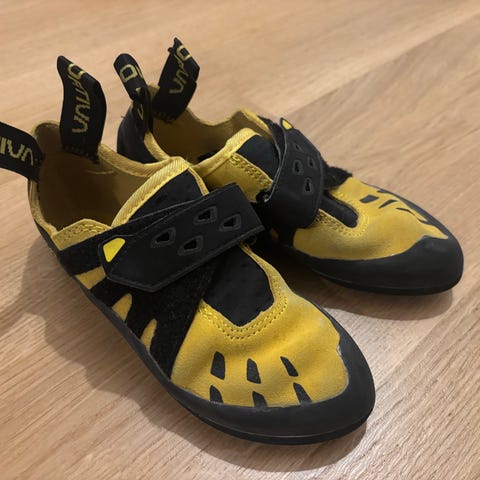 Myydään La Sportivan Stickit -kiipeilykengät kokoa 34-35. Kokoa pystyy säätämään kenkien remmillä, mikä tarjoaa pelivaraa lapsen kasvaessa. Kengät ovat olleet yhdellä lapsella käytössä, eivätkä haise.