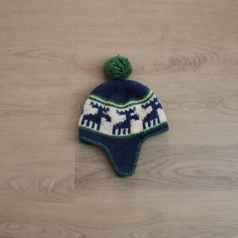 Musta lämmin Polarn O. Pyret lasten karvareunainen talvihattu, koko 158 cm (10-11 v.). Tekoturkisreunus tarjoaa lisälämpöä ja suojaa kylmältä.