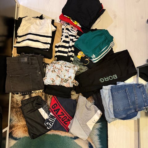 Naisten vaatepaketti, joitakin käytetty vähemmän ja joitain taas todella paljon. Vaatepakettiin kuuluu: