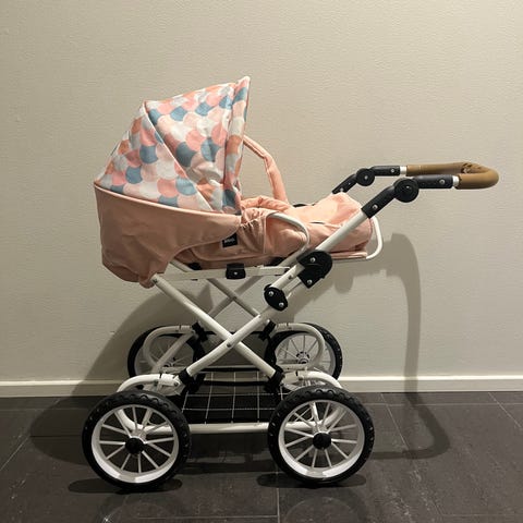 Brio yhdistelmävaunut nukelle. Vaunuissa on oikeiden yhdistelmävaunujen tavoin irrotettava, pehmustettu kantokoppa. Istuin ja jalkatuki ovat säädettävät ja materiaali voidaan pyyhkiä puhtaaksi kostealla liinalla. Työntökahvan korkeus voidaan säätää eri-ikäisiä ja -pituisia lapsia varten. Monikäyttöisissä vaunuissa on myös taitettava kuomu, kokoontaitettava runko, sivutaskut ja tilava ostoskori.