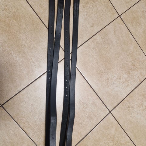 150cm pitkät mustat jalustinhihnat. Rasvauksen tarpeessa.