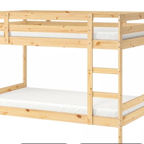 Myydään valkoinen kerrossänky pieniä käytön jälkiä mutta ei tarroja yms, siisti, on purettu. Ei patjaa.