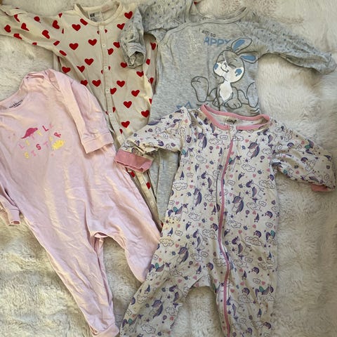 Myydään settinä yökkärit, pinkki ja valkoinen kokoa 80, muut kokoa 86. Haaleaa ruokatahraa on noissa vaaleissa (kuva jossa 3 vierekkäin, muista en löytänyt moitteitta. Muutoin käytetty hyvä kunto.