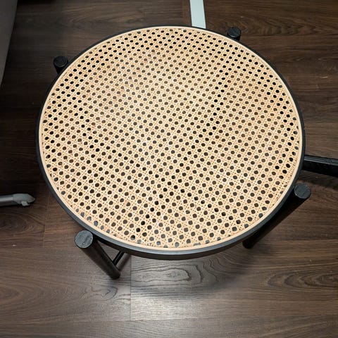 Pöytä, jossa betonisen näköinen kansi ja musta metallirunko. Neliön muotoinen, sopii erilaisiin sisustustyyleihin ja käyttötarkoituksiin, mutta ollut itsellä sohvapöytänä.