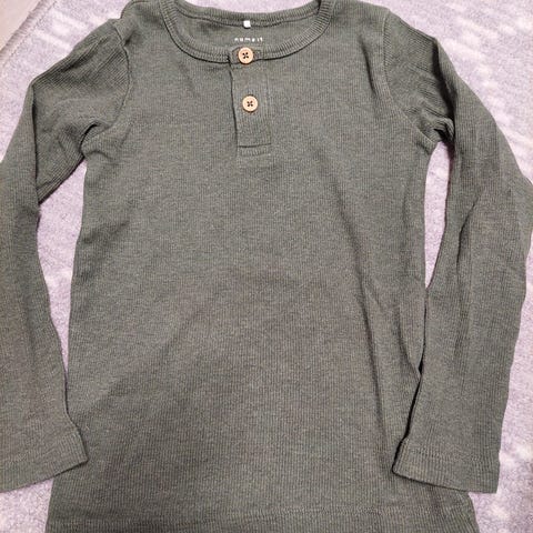 Name it paita 110cm. Tässä tuoksua. Edessä joku pieni jälki, tahraton. Hihasta ommeltu rikkeymä umpeen.