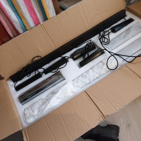 Kuvien mukainen ehjä kattovalaisin. Käytön jälkeä hieman löytyy ja sisäkuvussa tarrasta jäljet.