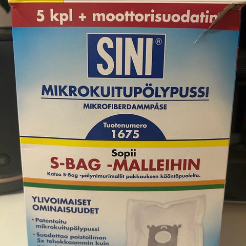 SINI Mikrokuitupölypussi S-Bag -malleihin 5 kpl + moottorisuodatin