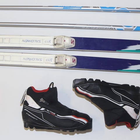 Ehjät välineet, suksien kannat olen uudelleen liimannut tehokkaalla 2 komponenttiliimalla. Suksien pohjissa on maltillisesti kulumaa. Tarvittaessa voidaan katsoa pidemmät sauvat.