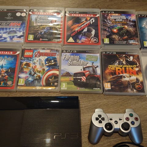 PS3 320gb malli, 14 peliä ja alle kuukauden vanha ohjain.