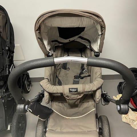 Emmaljunga Duo Combi lastenrattaat ruskealla värillä. Rattaissa on säädettävä istuinosa ja irrotettava kantokoppa. Rungossa on neljä pyörää ja säädettävä työntöaisa. Materiaali kestävää kangasta, sopii lapsille.Yksi rengas on haljennut, mutta se ei vaikuta ajettavuuteen. Voit ostaa uuden, sisäkumi on uusi ja vahingoittumaton.
