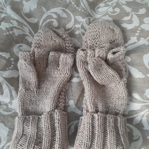 Neulotut läpälliset kynsikkäät, jossa lankana on perinteinen, lämmin ja kestävä 7veljestä (75%villa, 25% polyamidi)