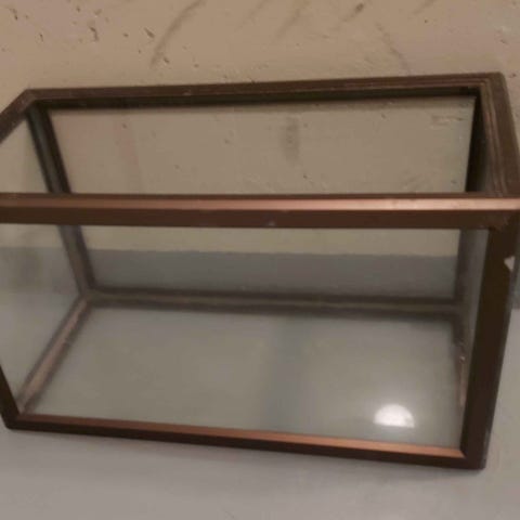Ostan terraarion tai vanhan akvaarion. Pohjan mitat n. 90x40, saa tarjota muillakin mitoilla, kuitenkin kokoluokka leopardigekolle sopiva.