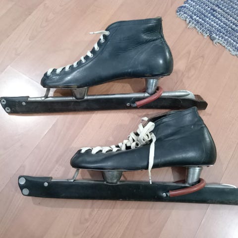 Vanhat, mutta ehjät ja toimivat pikaluistimet suojuksineen.