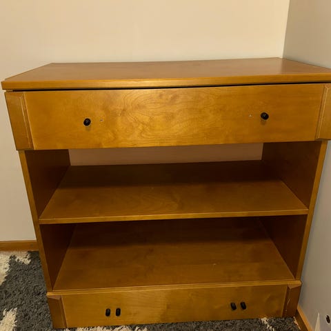 Myydään puinen kulmataso, jossa 3 tasoa. Sopii hyvin nurkkaan säilytystilaksi. Hyvässä kunnossa. Väri: luonnollinen puu/beige.