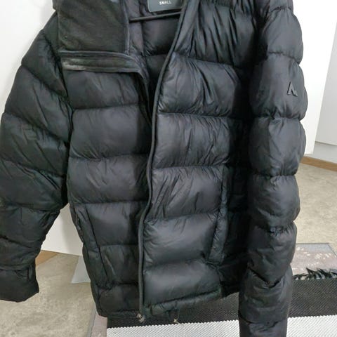 Myydään uudenveroisessa kunnossa oleva mustanruskea untuvatakki. Kiinnostava yksityiskohta vetoketjun ja nappien yhdistelmä - vaikutelma, että takkia pitää auki.