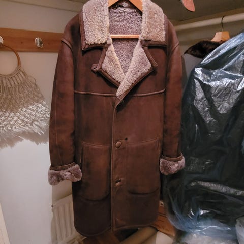 Friitala Nahkatehtaan valmistama pitkä lammasturkki.