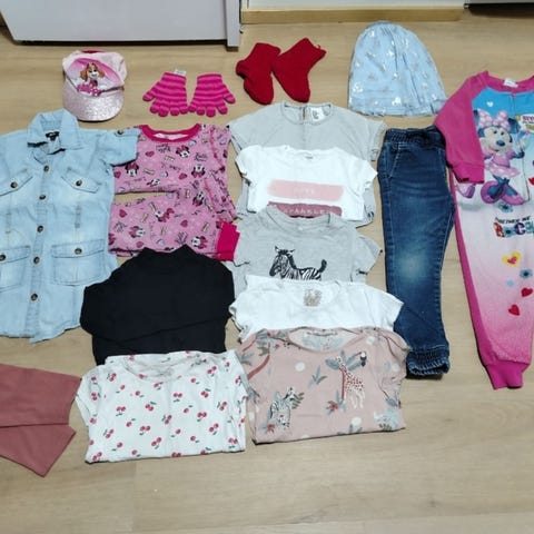 Myydään vaatepaketti koko 98-104 vaateet, ulkohousut, Kengät ja laukku kaıkkı kerralla.