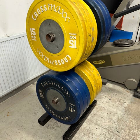 Levypainot 4 * 4,5kg 2 * 5kg 2 * 2,5kg ja lyhyt 130cm tanko joka menee kahteen osaan