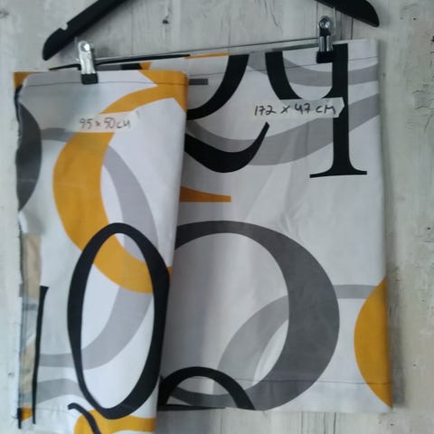 Pesty ja silitetty puuvillainen kangas, ei jousta. Tilkkutöihin ja tuunailuun!! Lakanakankaan oloinen, pehmeä pinta.