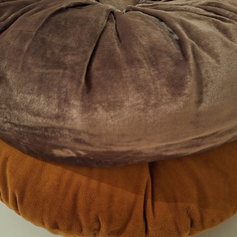 pyöreä - tyyny - koristetyyny - valkoinen - luonnonvalkoinen - sametti