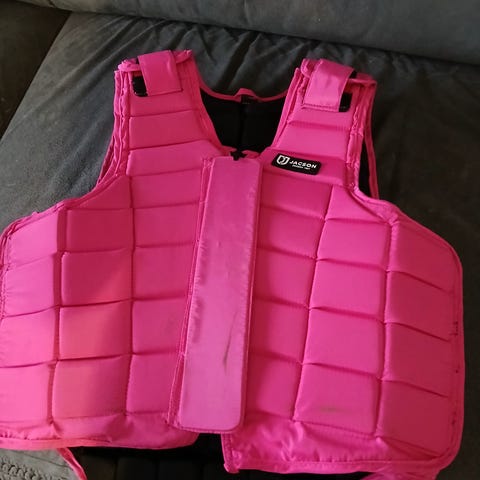 Turvaliivi ratsastukseen koko Junior 14, koko taulukko kuvissa. Tarrat pitävät, siistissä käytetyssä kunnossa.