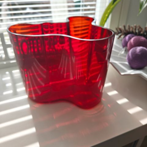 Koko: 160 mm Aalto maljakko, väri karpalo. Pohjatarra ja 'i-tarra'. Ovh 400€.