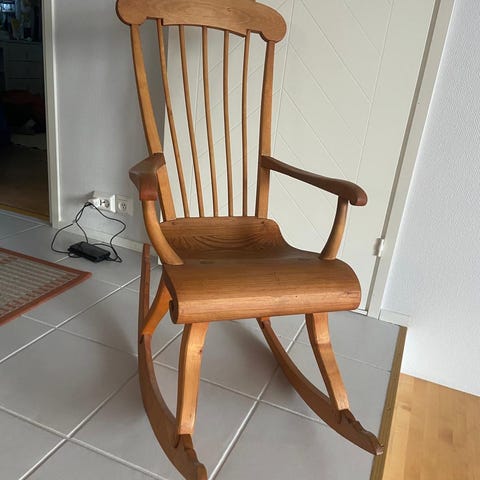 Vanha puinen Keinutuoli jonka käsinojat tarvitsee hieman liimausta.