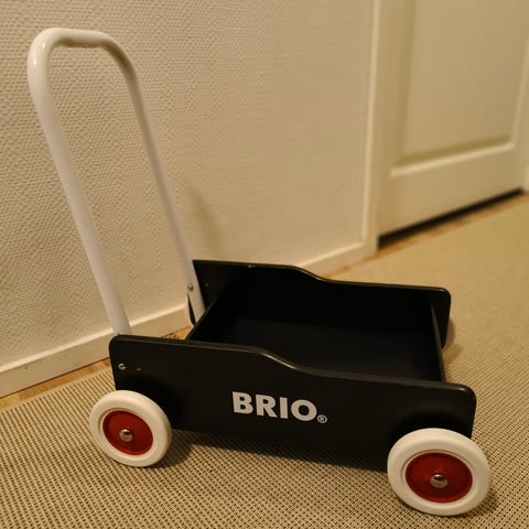 BRIOn legendaarinen taaperokärry uuteen kotiin. Pientä kulumaa mutta toimii moitteettomasti.