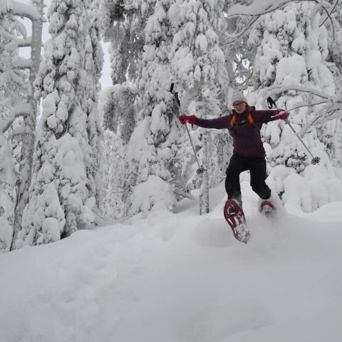 Kuusamossa vuokrataan laadukkaita liukulumikenkiä ja mukaan saat aina myös kunnolliset isosompaiset teleskooppisauvat.