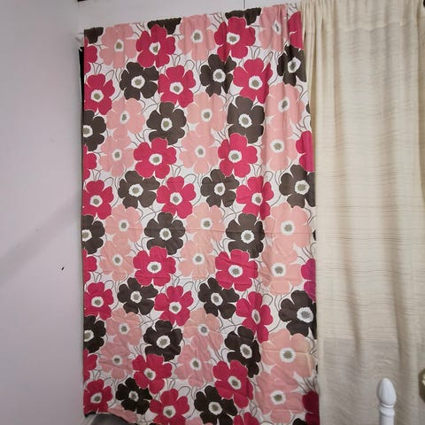 1 kukkaverho, mielestäni puuvillaa. HYVÄ kunto, ei haalistumia. Korkeus 240 cm ja leveys 140 cm. Tästä saisi myös kauniita tyynynpäällisiä, kasseja, kangastaulun, pöytäliinan yms. Voin lähettää, kulut ostajalle.