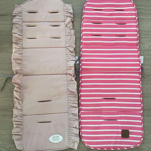 Petite Chérie -merkkinen vaaleanharmaa rattaiden tai turvakaukalon pehmuste/ lämmitin. Katso kuvat pari tahraa, en oo yrittänyt tahranpoistoa.