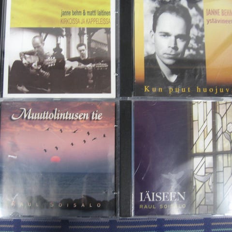 Myydään hengellisiä cd-levyjä 3,00 euroa kappale. Kaikki cd:t kuunneltu ja todettu toimiviksi. Cd:ssä voi olla naarmuja & kansipapereissa jälkiä/omistuskirjoituksia, mutta cd-kotelot ovat ehjät. Postituskulut ostajalle ja noutokin sovittavissa.