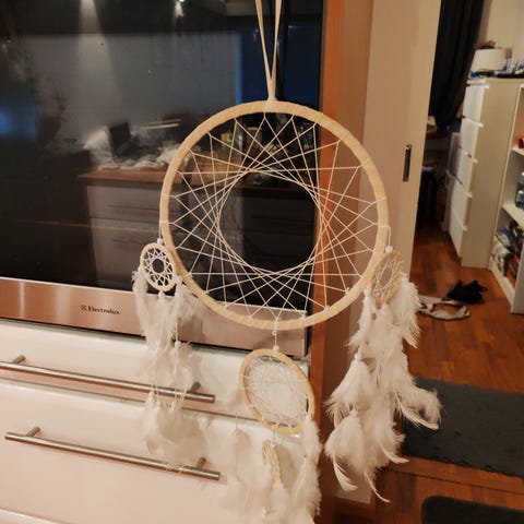 Unisieppari. Dream catcher. Hyväkuntoinen ja ehjä. Kauniit sulat ja yksityiskohdat. Sininen pohjaväri.
