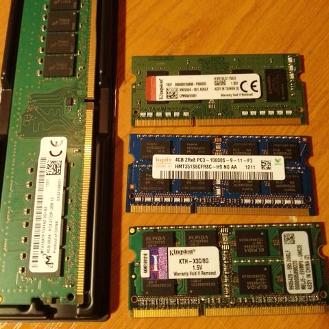 Sekalainen kokoelma vuosien varrella talteen otettuja muisteja, isoimmat kolme kampaa DDR3 4gb ja muut pienempiä. Ei testausmahdollisuutta näille itsellä, joten vähän sikana säkissä -tyyppinen ostos.