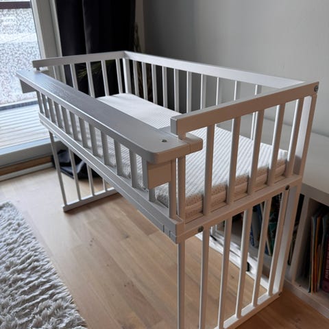 Myydään erittäin hyväkuntoinen Fillikid cocon pinnasänky, joka toimii myös sivuvaunusänkynä.