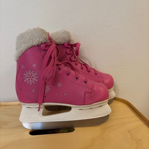 Pinkit Minni lasten luistimet. Koko 28. Pohjallisen mitta 17,5 cm.