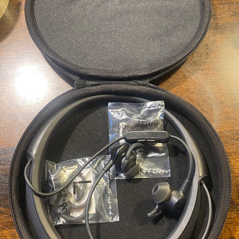 Bosen langattomat bluetooth-nappikuulokkeet. Latausportissa jotain vikaa, pitäisi todennäköisesti kolvailla uudestaan kiinni piirilevyyn. Lataus ei välttämättä onnistu.