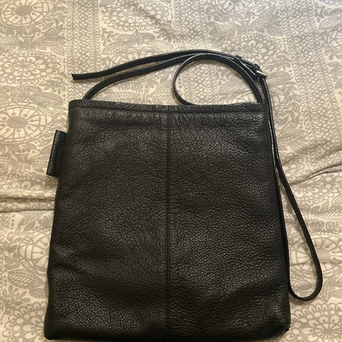 Laukussa on vetoketjutasku ja raidallinen sisävuori, jossa värjäämään mutta ei likaa.