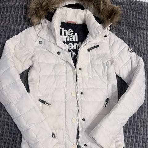 Superdry Original Fuji takki naisille, koko XS. Vihreä väri ja polyesterimateriaali. Pitkähkö malli, jossa huppu ja karvareunus. Karva ei irtoa. Tässä mallissa vetskari ei mene ihan alas, napit kylläkin. Helpottaa liikkumista.