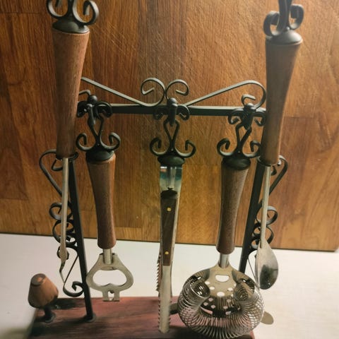 Cocktail ravistin ja tarvikkeet: sisältää punaisen metallisen ja lasisen ravistimen, Koskenkorvan murskaimen, metallisen suodattimen, kaksi metallista pilliä, sekoituslusikan, virallisen 4cl alkoholi mitan, hedelmäpihdit ja viinipullon avaimen. Vain haku Turusta ja maksu käteisellä.
