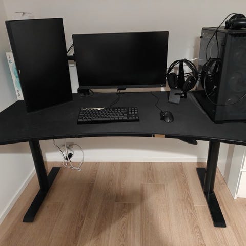 Halutessa pöydälle mahtuu helposti yhtä aikaa kaksi 24" näyttöä sekä pöytäkone.