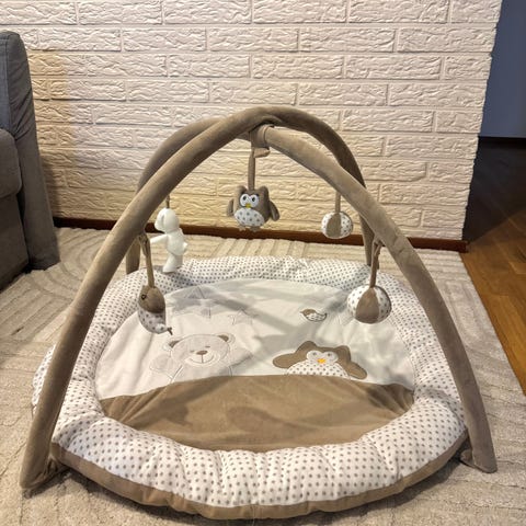 Hyväkuntoinen leikkimatto, ainoa miinus on että auringon sisällä oleva ”musiikki osa” ei toimi kunnolla. Ääni välillä ns. pätkii. Patterin vaihtoa ei ole kokeiltu. Matto on konepestävä ja pesty juuri koneessa😊.