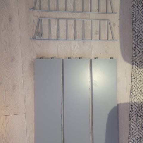Sivupaneelit, 3 hyllyä ja kiinnityspalat.