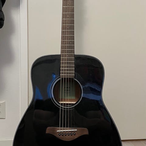Myydään musta Yamahan perusakkari. Mukava soittaa ja kuulostaa ihan mainiolta. Pinnassa toki muutama pieni naarmu ja hieman käytön jälkiä. Kielet ovat ikivanhat, joten kaupan päälle uusi kielisetti ja lattiateline.